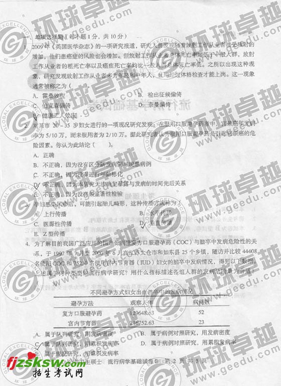2010在职公共卫生硕士B卷真题流行病学