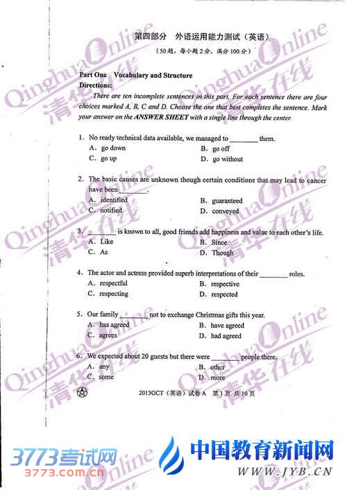 2013年在职人员攻读硕士学位全国联考/GCT联考于10月27日举行。中国教育新闻网联合清华在线在第一时间为考生传达此次考试真题及参考答案。今年北京市有21907人报名,与去年基本持平。中医师承(硕士)、中医师承(博士)2个专业类别为两年一次招生,今年暂停招生。报名人数位列前5的专业类别是工程硕士、艺术硕士、教育硕士、公共管理硕士、法律硕士。