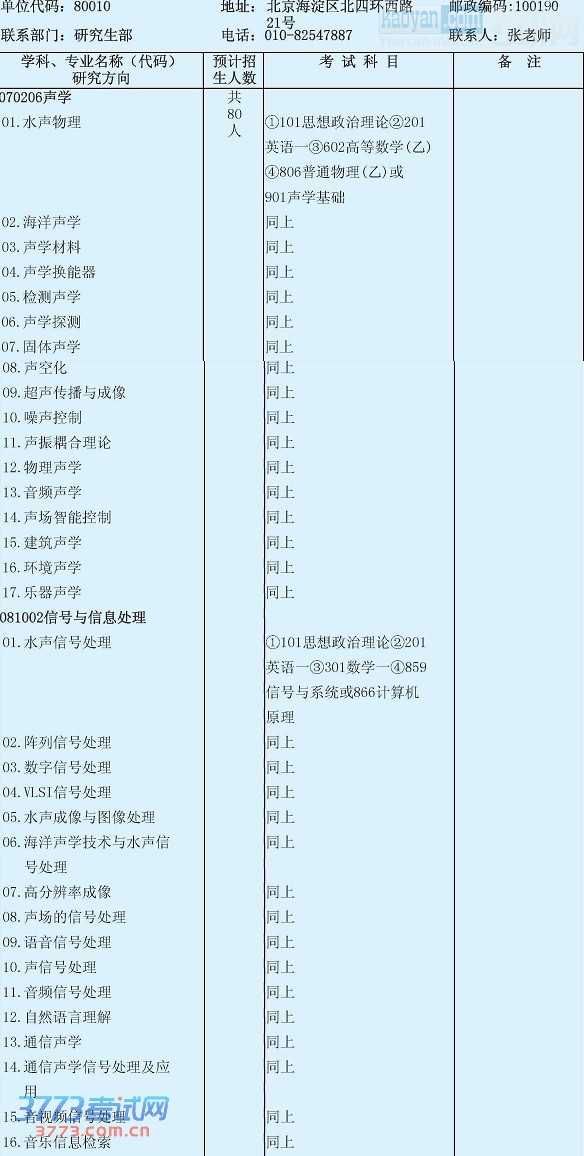 2014中科院声学研究所硕士招生专业目录