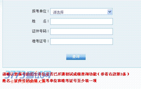 3、若无查询结果,请检查您报考的招生单位是否已开通初试成绩查询功能,即报考单位是否存在于查询条件的“报考单位”下拉列表中有的报考单位。