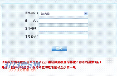 3、若无查询结果,请检查您报考的招生单位是否已开通初试成绩查询功能,即报考单位是否存在于查询条件的“报考单位”下拉列表中有的报考单位。