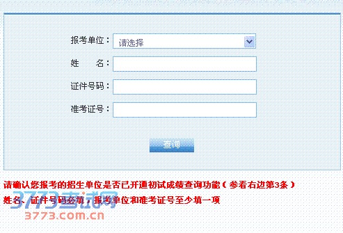 3、若无查询结果,请检查您报考的招生单位是否已开通初试成绩查询功能,即报考单位是否存在于查询条件的“报考单位”下拉列表中有的报考单位。