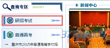 1、进入重庆市教育考试院,找到“查询专区”,点击“研招考试”