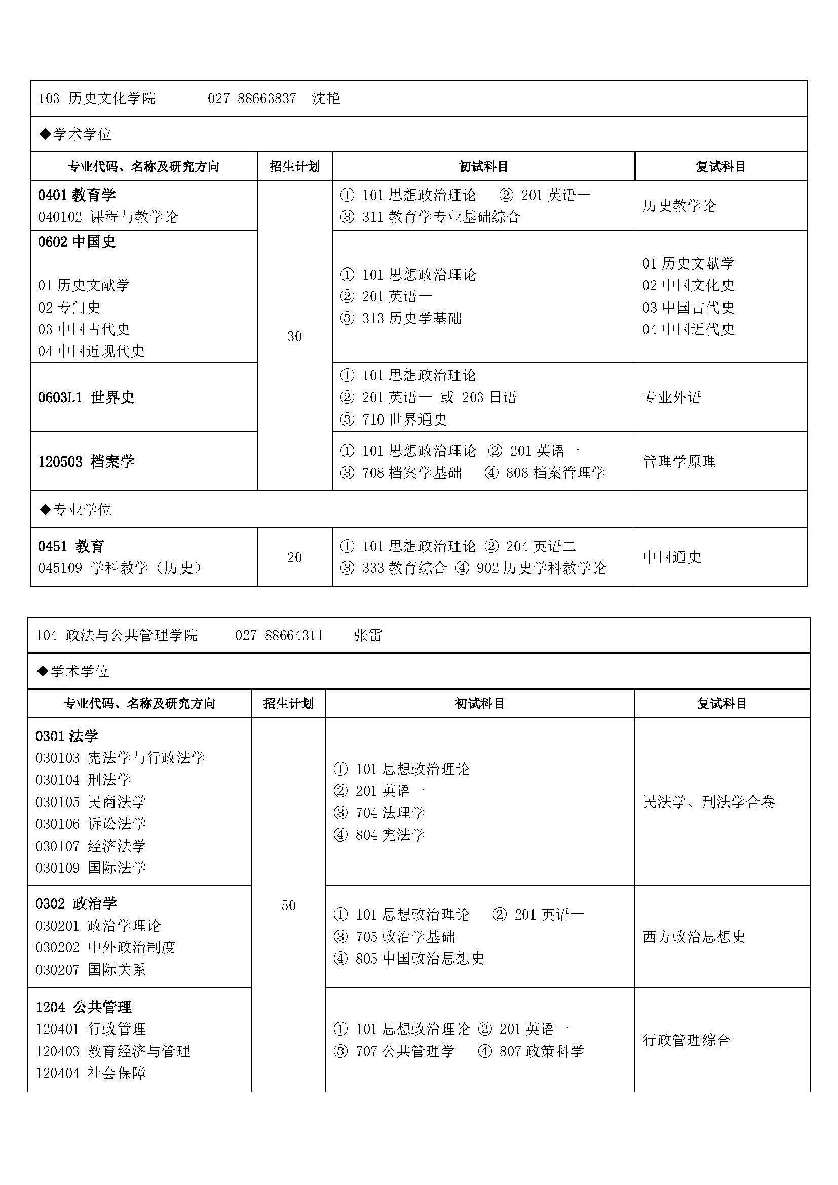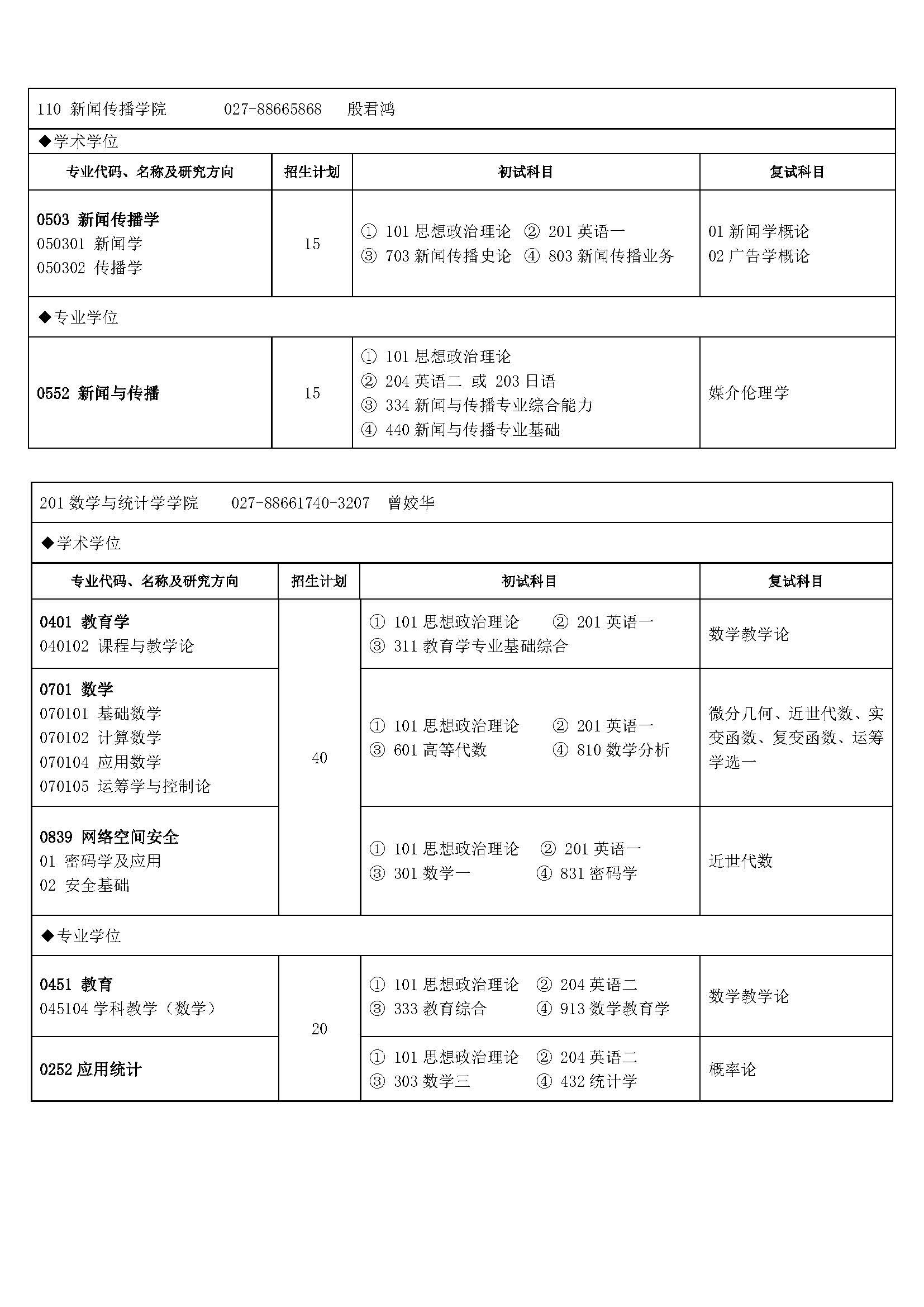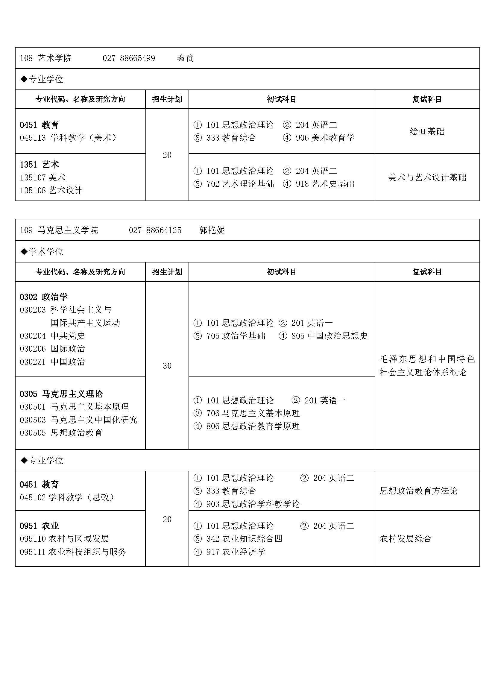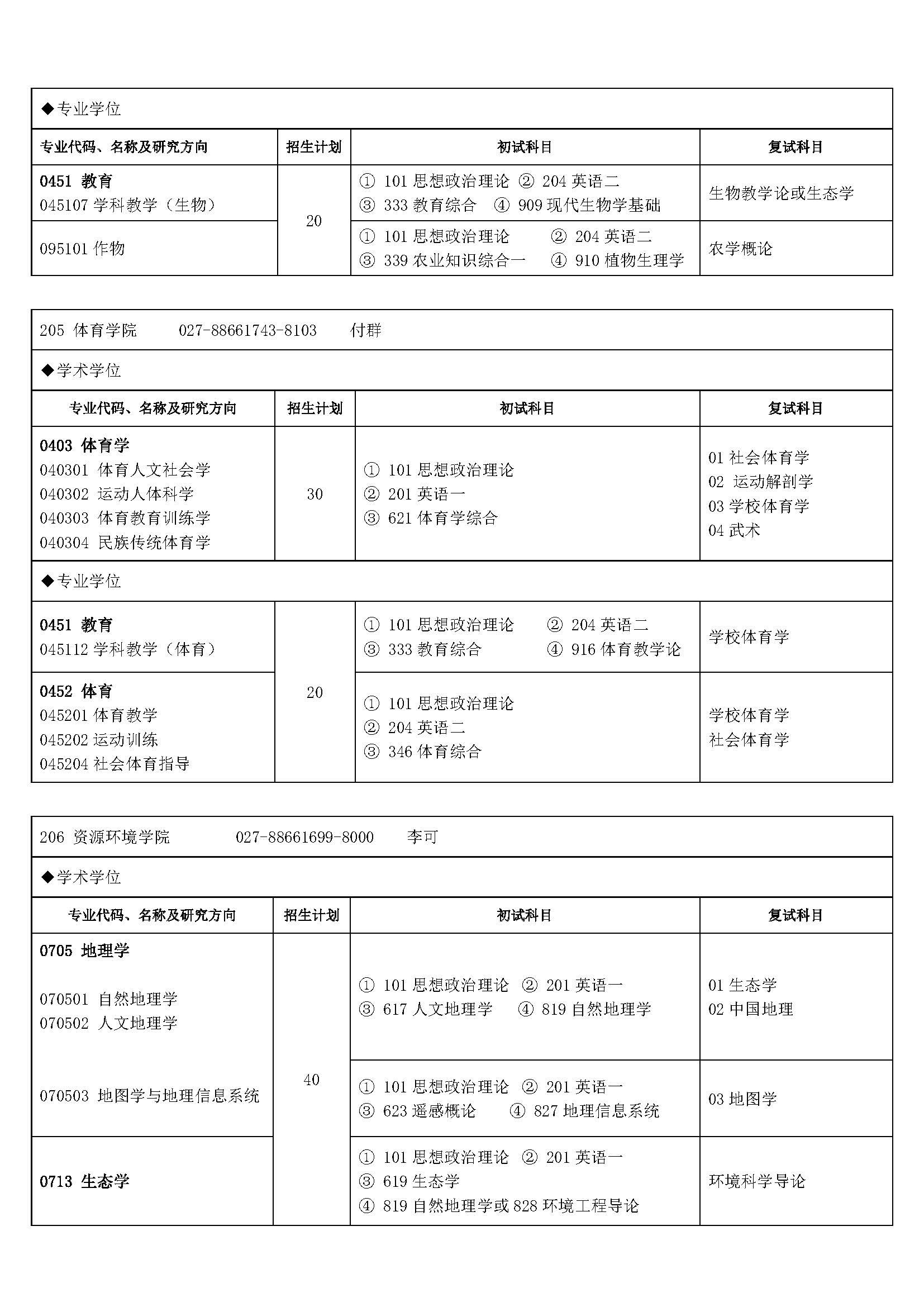 2016湖北大学考研专业目录及考试科目