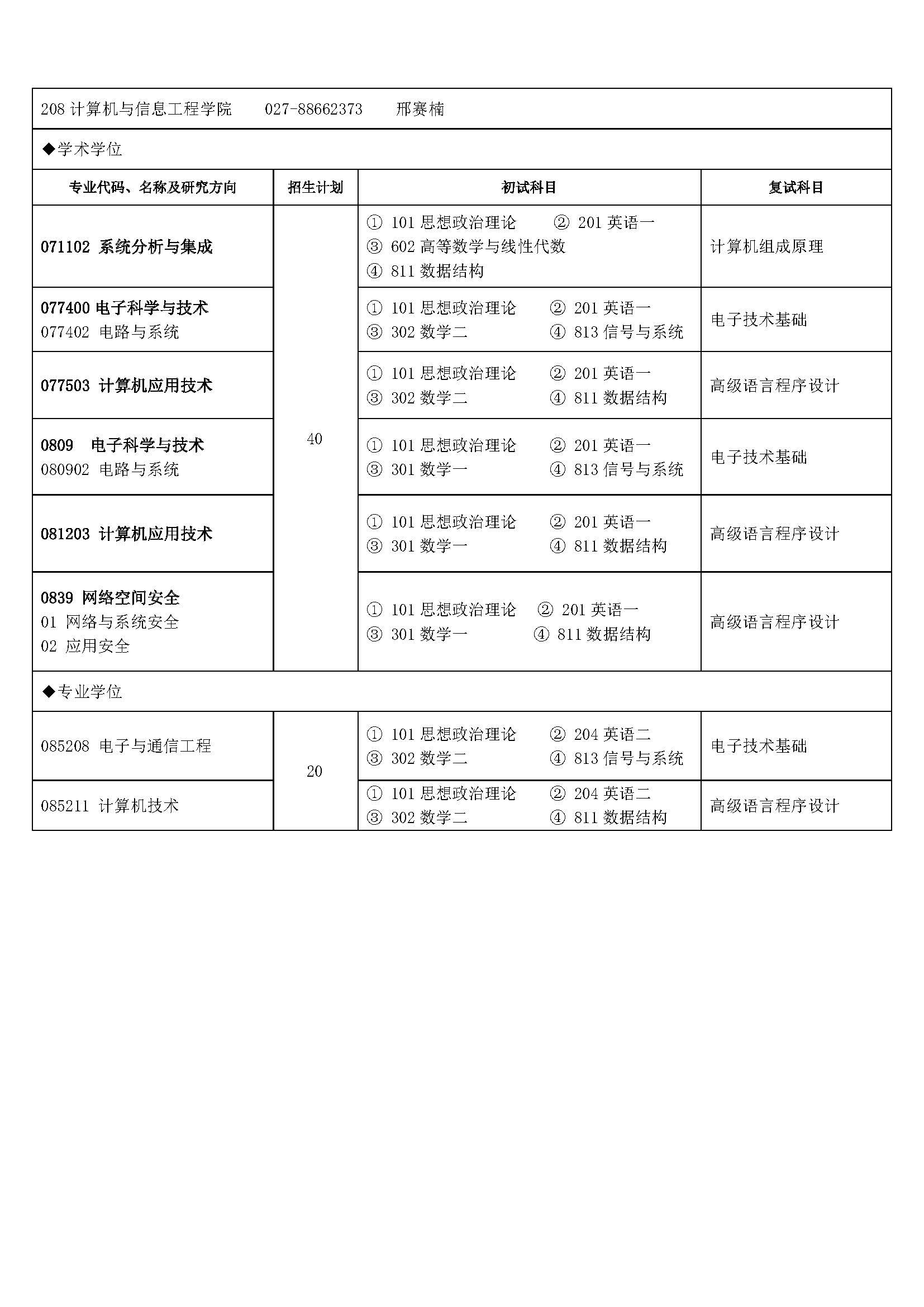 2017湖北大学考研招生专业目录(全日