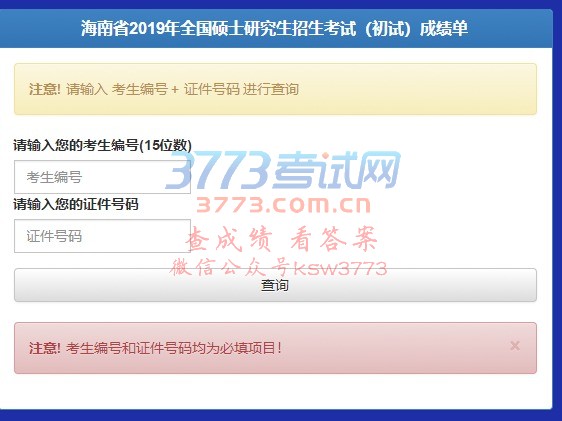 海南省2019年全国硕士研究生招生考试(初试)成绩查询 点击查看