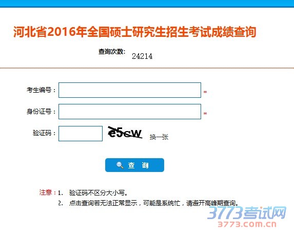 河北2016年考研初试成绩查询入口 河北省2016年全国硕士研究生招生考试初试成绩将于2016年2月15日公布(此成绩不包含报考外省研究生招生单位的考生成绩),请报考我省研究生招生单位的考生及时登录河北省教育考试院网站(网址:http://www.hebeea.edu.cn),通过考生编号和报名所使用的居民身份证件号码进行查询。【点击进入查分入口】
