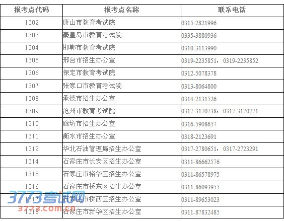 2014年河北省硕士研究生招生考试报考点