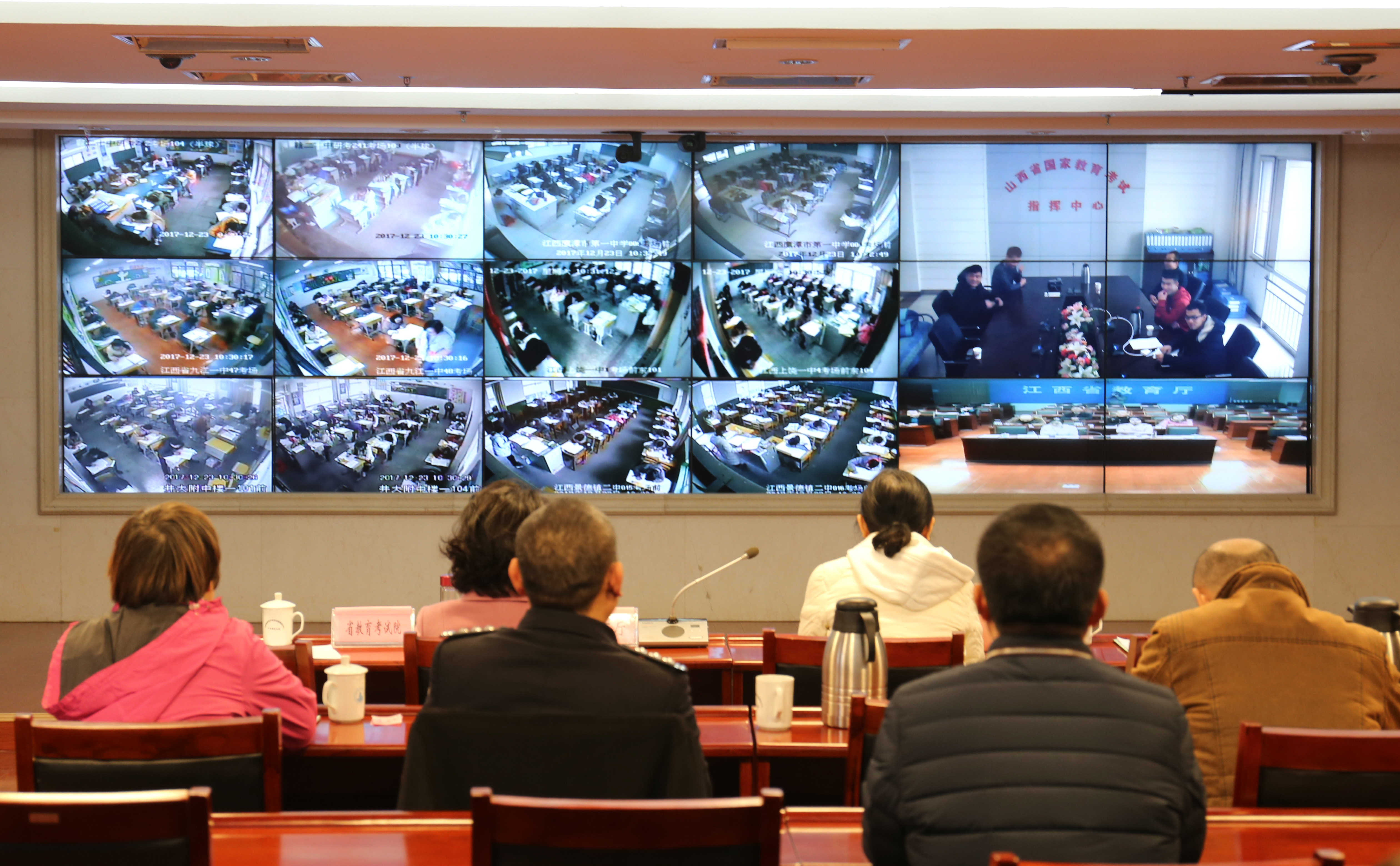 省教育考试院院长刘雪平与招考委成员单位有关负责同志在我省国家教育考试指挥中心巡查考试工作
