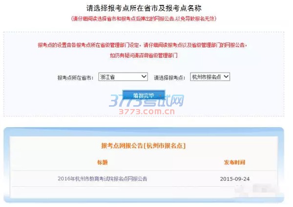 注:在选择报考点之后,下方会自动显示报考点网报公告,如图中杭州市报考点,勤思小编建议研友们一定要先阅读下报考点的网报公告。