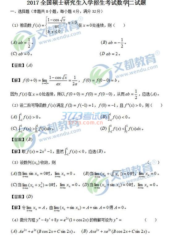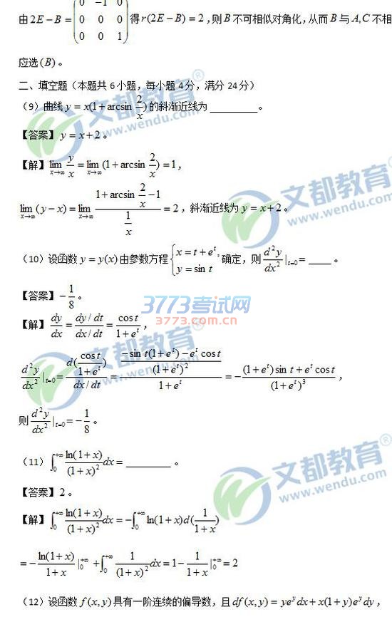 3773考试网 - 考研 - 历年真题答案 - 考研数学 - 正文