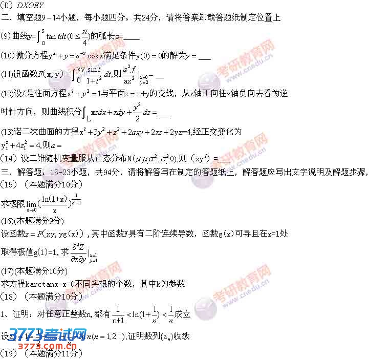 2016考研数学二真题发布