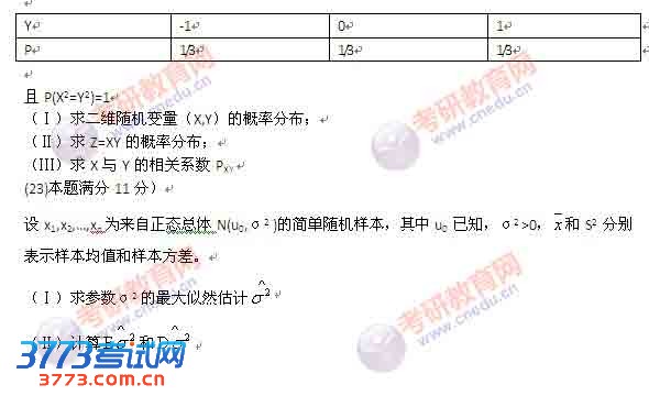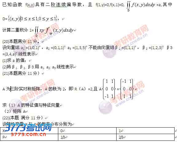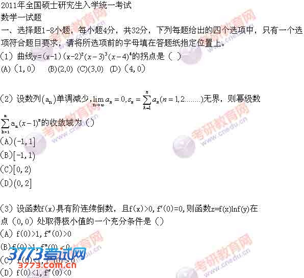 2011年考研数学一真题及答案