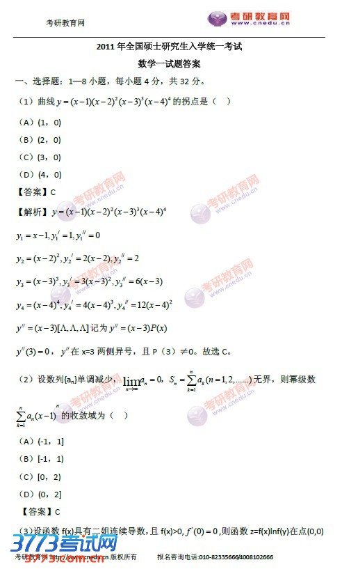 2011年考研数学一真题答案>>>