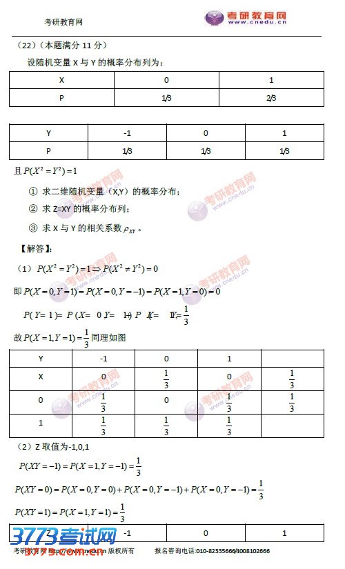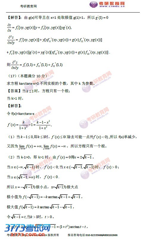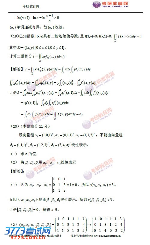 2016考研数学三答案发布