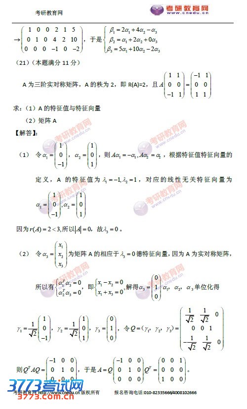 2015考研数学一真题答案及解析(部分)