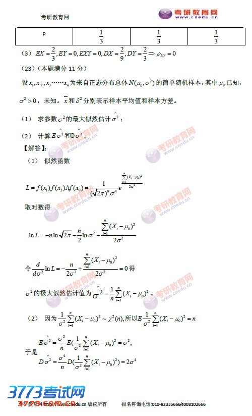 2015考研数学二答案:解答题23题