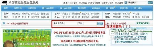 第一步:登陆中国研究生招生信息网,并进行用户名和密码(报名时注册的那个账号密码,非本人信息)登录。