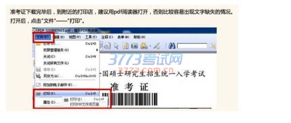 6、准考证下载完毕后,到附近的打印店,建议用PDF阅读器打开,否则容易出现文字缺失的情况,打开后,点击文件打印。