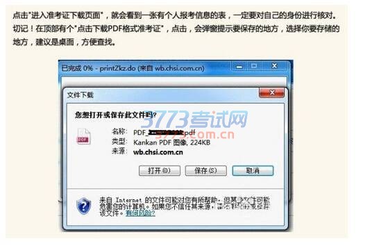 4、点击进入准考证下载页面,就会看到一张有个人报考信息的表,一定要对自己的身份进行核对,切记,在顶部有个‘点击下载PDF格式准考证’。点击,会弹出提示要保存的地方,选择你要存储的地方,建议是桌面。
