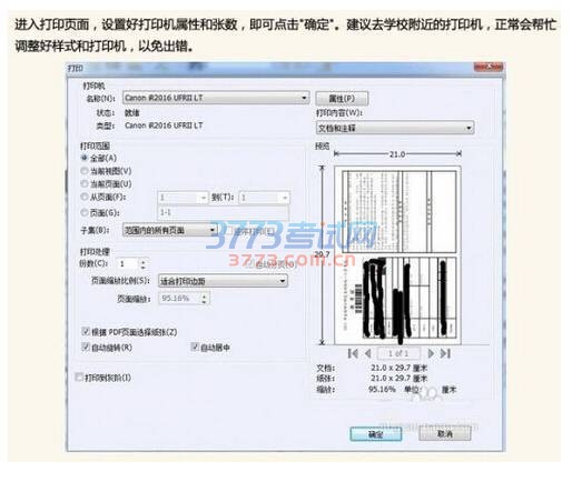 7、进入打印页面后,设置好打印机的属性和张数,即可点击确定,建议用专业的打印设备,以免出错