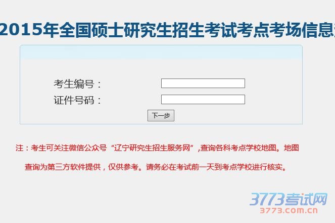 辽宁省2015年全国硕士研究生招生考试考点考场信息查询 考生编号: 证件号码: