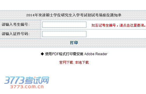 2014年内蒙古攻读硕士学位研究生入学考试初试考场座位通知单 请输入考生编号: 如忘记考生编号,请点击这里查询。 请输入证件号码: