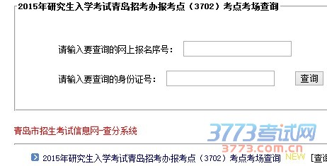 2015年研究生入学考试青岛招考办报考点(3702)考点考场查询