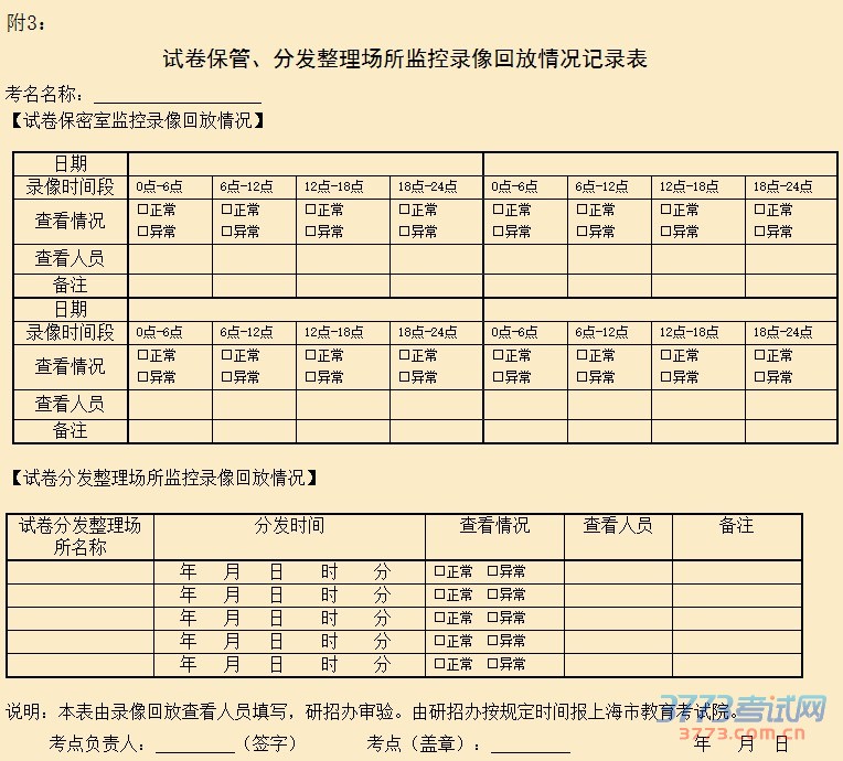 注:1、按照教育部有关规定,国家教育考试备用试卷启封全过程必须在视频监控下进行并由主考、副主考签字记录,本表考后由上海市教育考试院收回;
