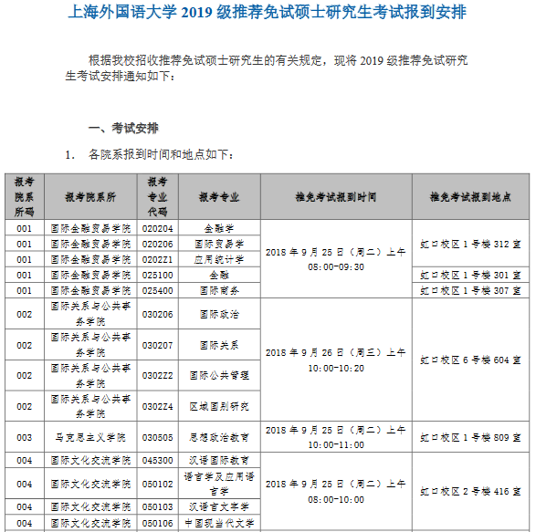 2019上海外国语大学推免试硕士研究生考试报到安排