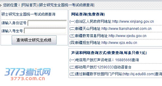新疆2014年硕士研究生招生考试初试成绩定于2月19日北京时间18时公布,报考新疆各招生单位硕士研究生的考生可登录新疆招生网(http://www.xjzs.edu.cn)、新疆教育厅网站(http://www.xjedu.gov.cn)查询,也可联系所报考的招生单位直接查询。