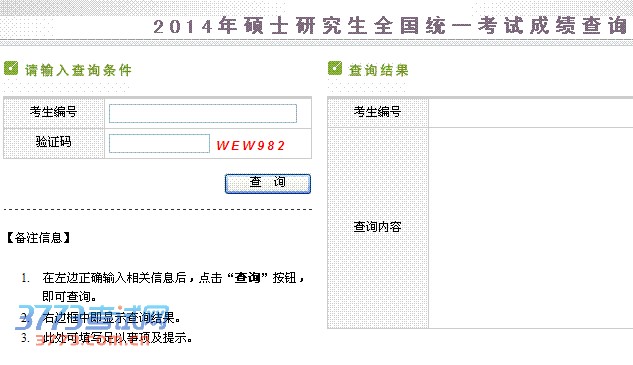 2014年新疆研究生考试成绩查询入口 2014年硕士研究生全国统一考试成绩查询 考生编号 验证码 【备注信息】