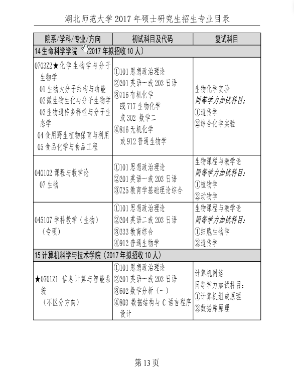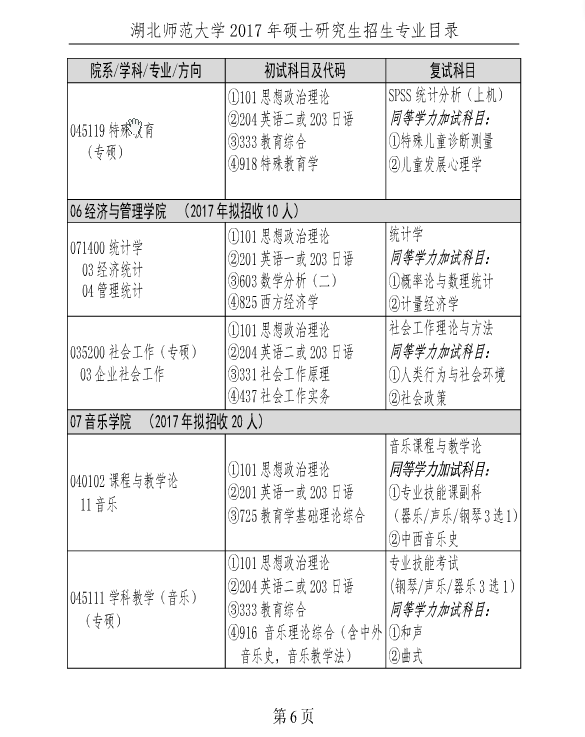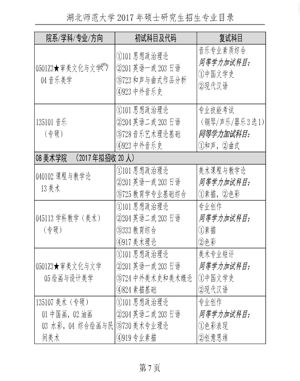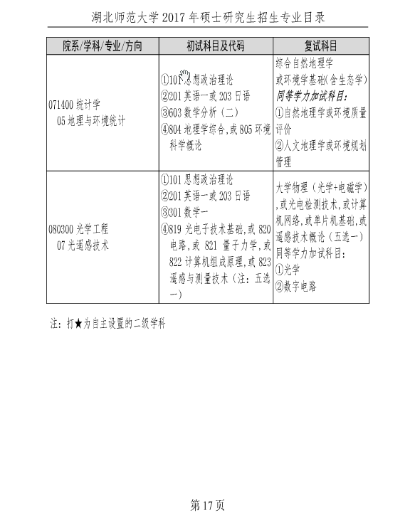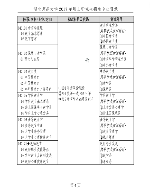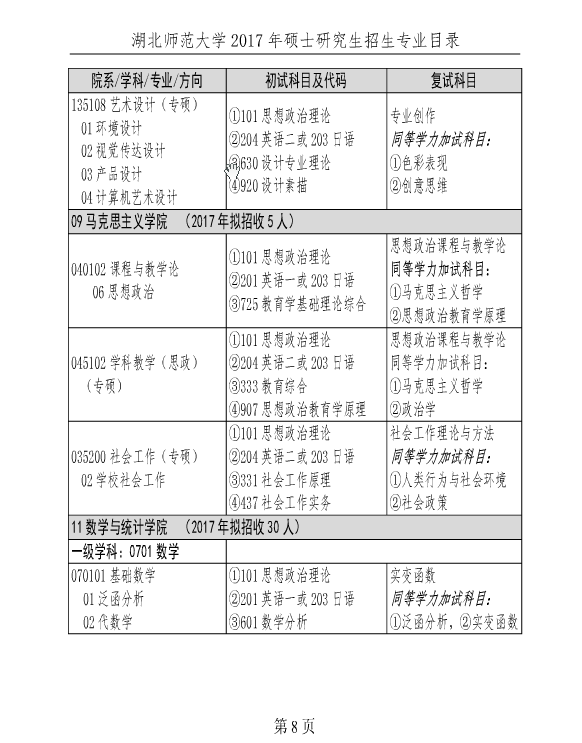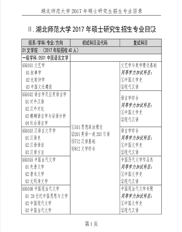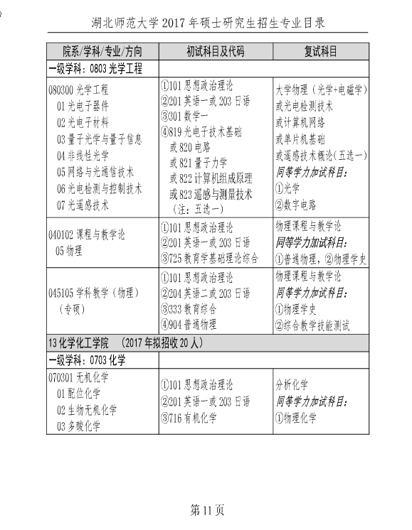据湖北师范大学研究生院消息,2017年湖北师范大学考研专业目录及考试科目已经公布,详情如下: