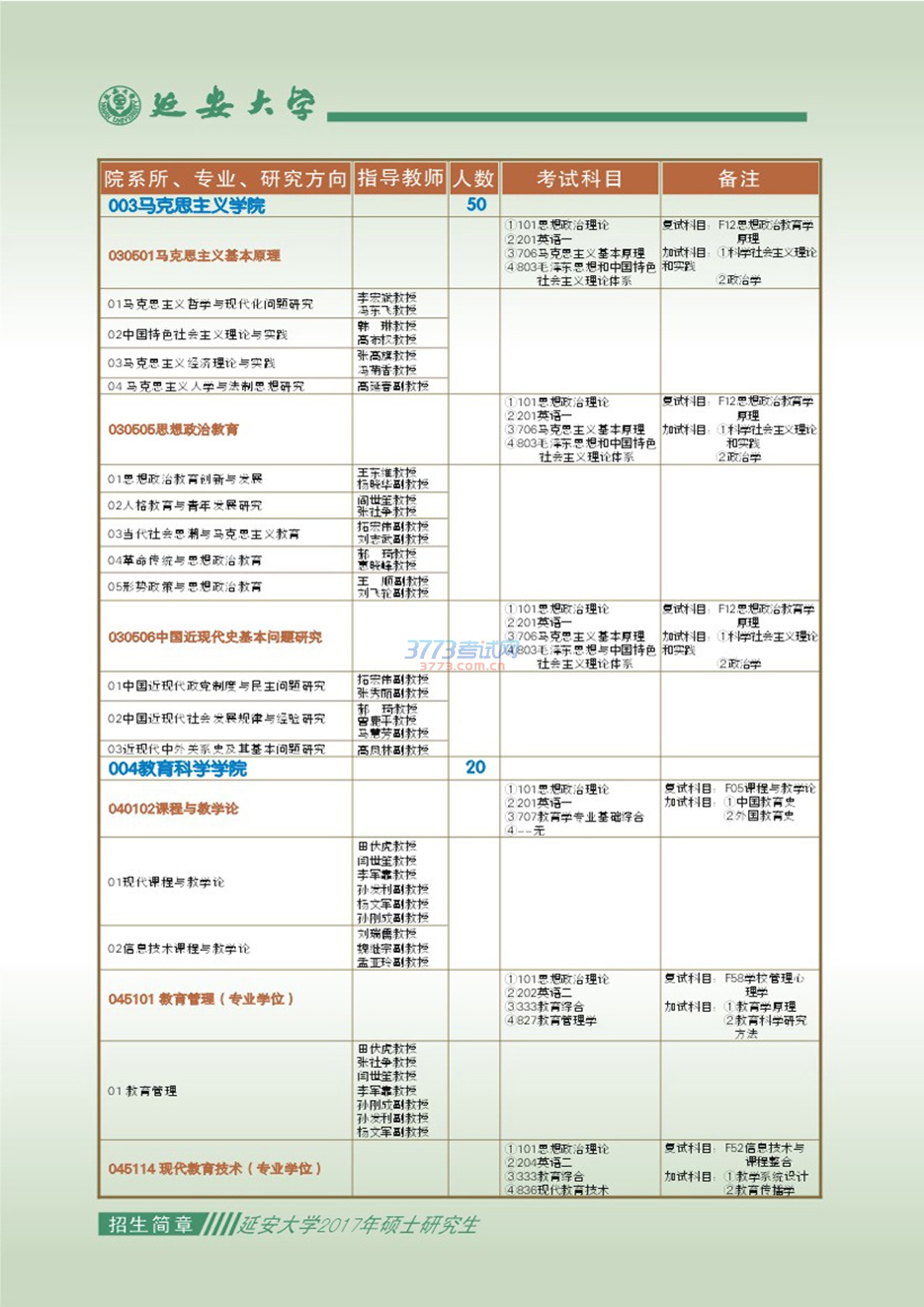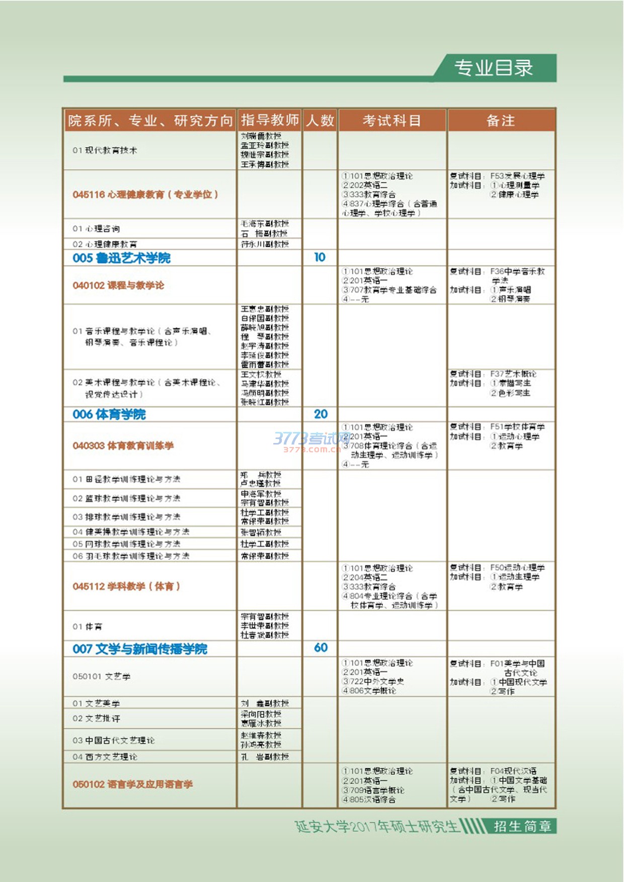 据延安大学研究生院消息,2017年延安大学考研专业目录及考试科目已经公布,详情如下: