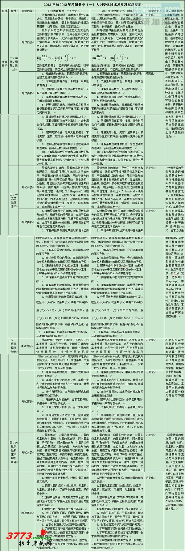 2013考研数学大纲h2012年研(1)大纲变化对比及复习重点提示