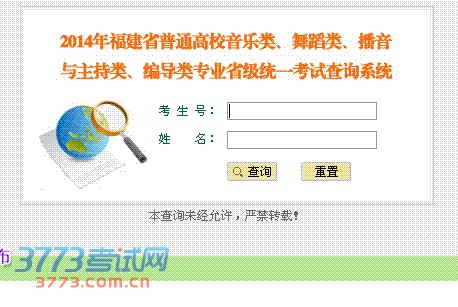 2014年福建省普通高校音乐类、舞蹈类、播音与主持类、编导类专业省级统一考试查询系统