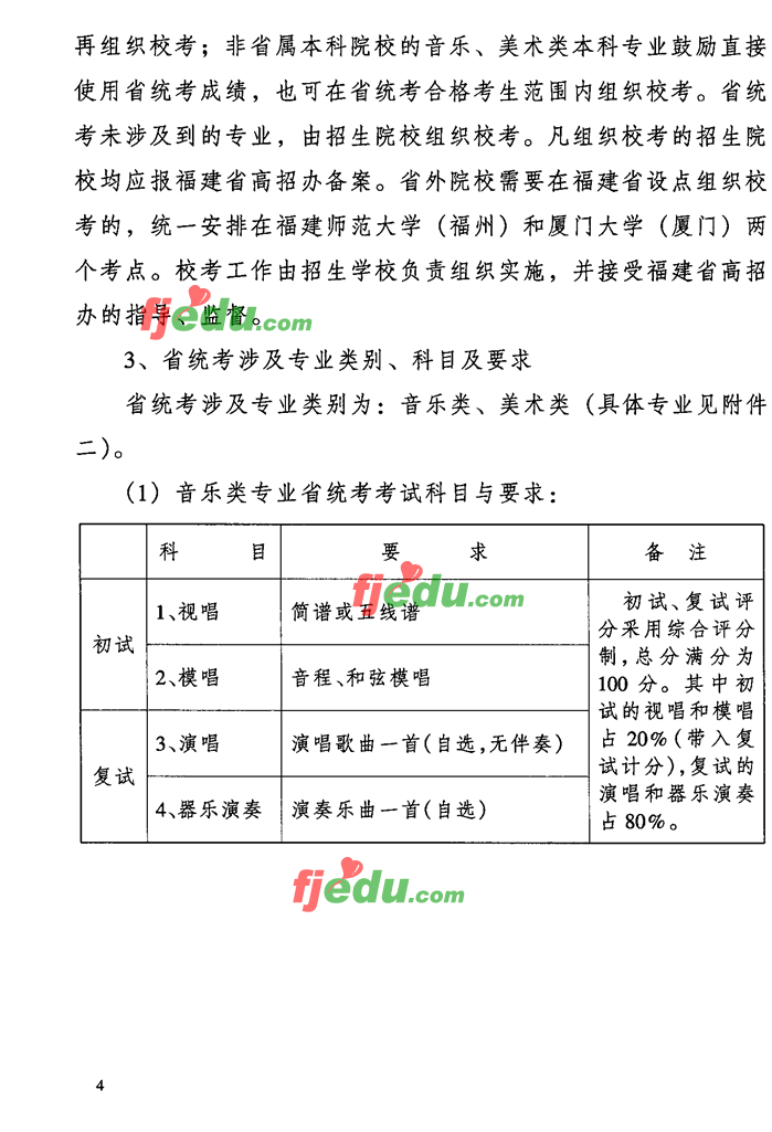 2007福建省音乐类专业省统考考试科目及要求