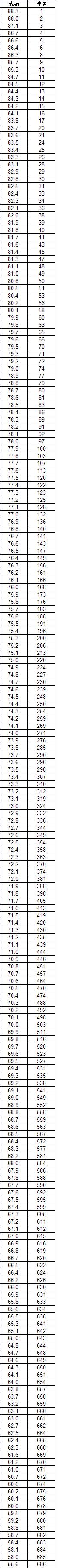 2019年健美操项目测试成绩一分一档表