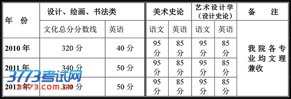 天津美院2010年—2012年文化成绩分数线(仅供参考)
