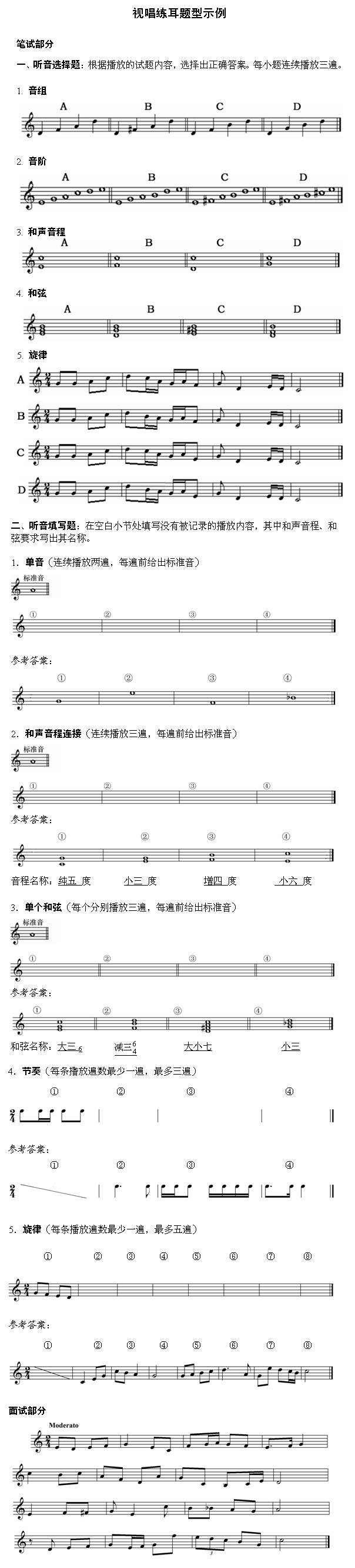 笔试部分:要求用五线谱记谱,如用简谱记谱按实际得分的50%记分。