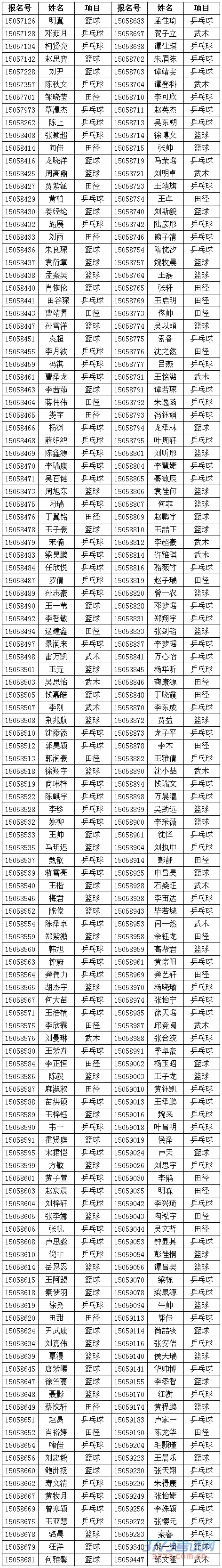 2015年华中科技大学高水平运动队招生初审合格名单公示