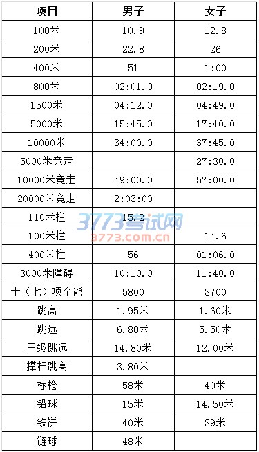 3、田径各项测试参考报名标准: