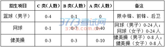 C类:对极少数体育项目成绩特别突出并且是我校急需项目的国家一级(含)以上运动员(必须有相应运动等级证书),可参加面向此类人员的单独招生文化课考试,合格者可免于参加普通高考。这类考生入选公示人数不超过我校今年高水平运动队招生计划的20%(8人)。