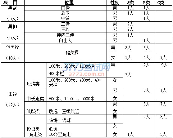 1、招生项目:田径、男子篮球、男子排球、健美操。