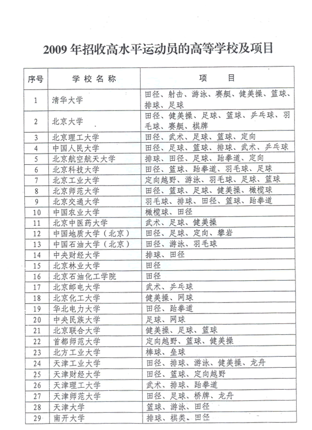 2009年河南大学郑州大学等15所高校招收高水平运动