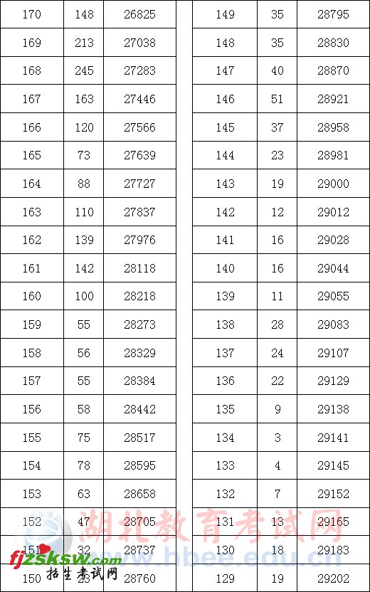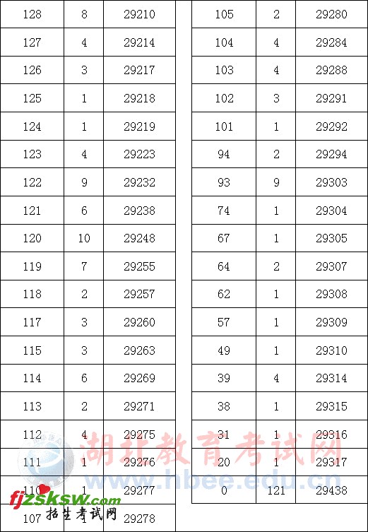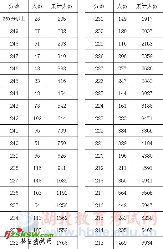 2011年湖北省美术统考成绩一分一段表