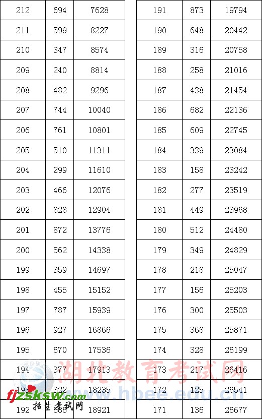 湖北省2011年美术专业基础课统考一分一档表