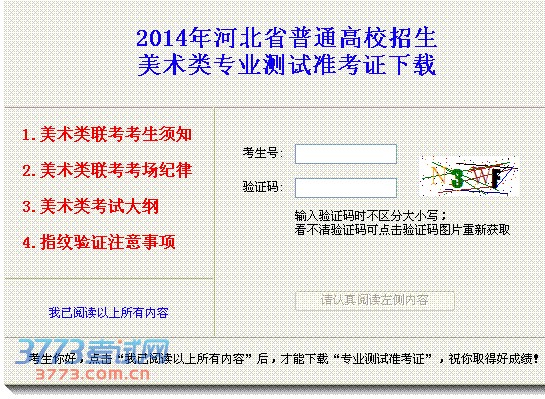 2014年河北省普通高校招生美术类专业测试准考证下载