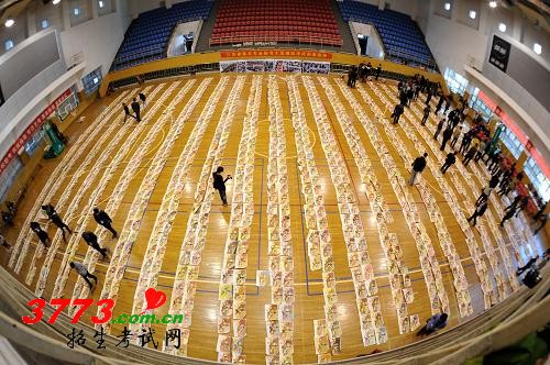 11月4日,评委和专家在阅卷现场阅卷。当日,由江苏省美术培训机构联盟组织的“百校联考”——全省美术专业统考大型模拟考试进入阅卷阶段,约1.5万份色彩和素描试卷集中在江苏教育学院体育馆,由专家和评委进行阅卷评议。为迎接12月初即将举行的高校招生美术专业统考,全省7000多名美术类考生参加了“百校联考”模拟考试。此次考试完全按高考程序和要求展开,教师们将通过阅卷进行备考调研,从中了解学生专业水平,明确定位,并进行针对性指导。新华社记者 孙参 摄
