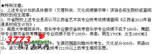 此外,省高招办还特别说明指出,南昌大学填报条件:音乐学专业要求省统考音乐学专业成绩不低于160分,舞蹈学专业要求省统考舞蹈学专业成绩不低于135分,身高:男生170CM、女生160CM以上。